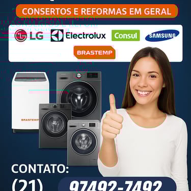 Especializados em consertos e manutenção de máquinas de lavar roupas, geladeiras, freezer, fogões, cooktop, micro-ondas e aquecedores a gás.
